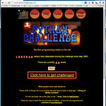 무작정 언어만 공부하기 지루할때는 문제를 풀어보면서 배우는 것도 하나의 방법이다.지금부터 풀어볼 사이트는 python 프로그래밍을 공부하기 위한 사이트이다.뭐 시간이 나면 python외에 다른 언어를 사용해서 풀어봐도 좋을 듯 하다. http://www.pythonchallenge.com/특별히 로그인이 필요없어 랭킹이나 점수가 없고, 단계별로 URL을 기억해 놓아야할 것 같다.시간이 남는다면 매번 다른 언어나 다른 방법으로 풀어봐도 좋을 듯. 아래 빨간 박스 친 곳을 클릭하면 문제가 시작된다. # 몸 풀기 문제여기는 문제가 이미지로 나오기 때문에 약간의 센스와 약간의 영어 실력이 필요하다. 2의 38제곱을 구하는 문제. 힌트를 보니 URL을 이용해 다음 단계로 넘어가는 것을 알 수 있다. 몸 풀기 문제..
